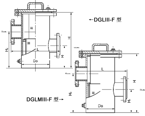 | 7、藍式法蘭連接重疊型高低接管平底式過濾器(DGLMIII-F型) |